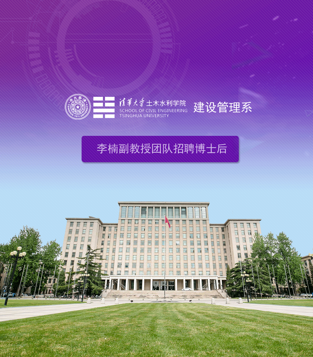 清华大学建设管理系李楠副教授团队2026年招聘博士后